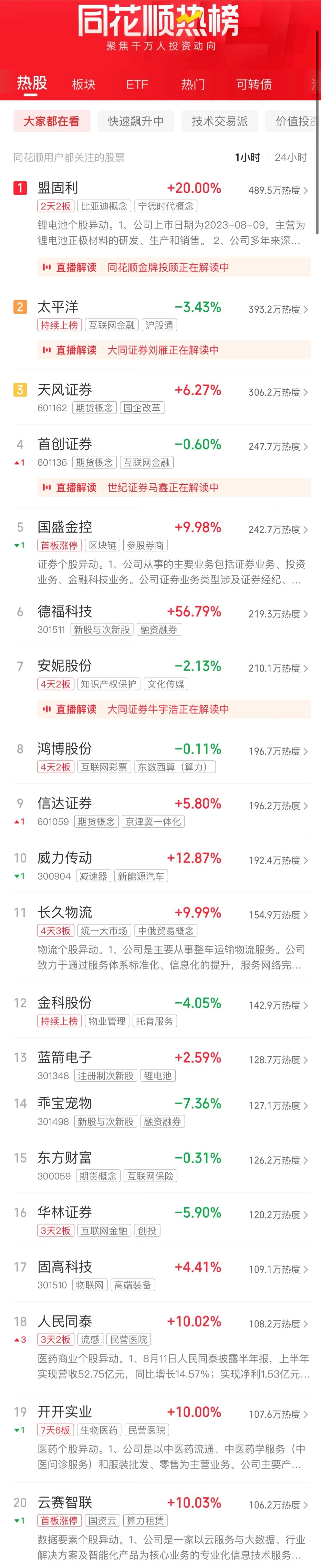 盘面上,捷荣技术(002855)再度涨停走出20天15板。新型工业化概念掀起涨停潮,德恩精工(300780)、华辰装备(300809)双双20cm涨停,精伦电子(600355)、华东数控(002248)、华东重机(002685)等多股涨停。光刻机概念午后活跃,张江高科(600895)一度涨超8%。ChatGPT概念活跃,海天瑞声20cm涨停,万兴科技(300624)涨超14%。数据要素午后异动,人民网涨停炸板,华为产业链走低,创耀科技跌超10%,荣联科技(002642)、高鸿股份(000851)跌超5%。