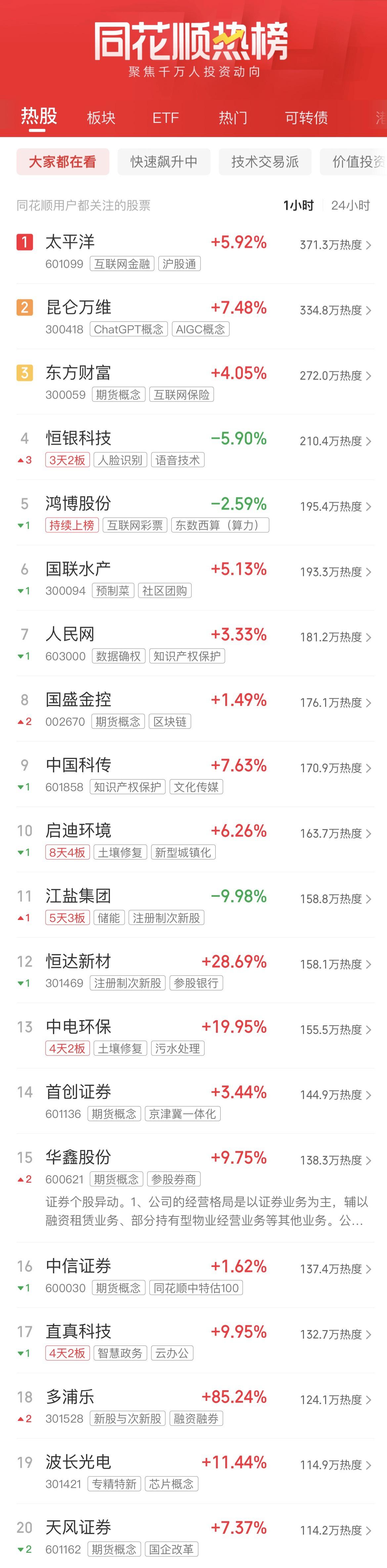 10:02 ChatGPT概念震荡拉升,海天瑞声20cm涨停,万兴科技涨超13%,昆仑万维、科大讯飞、拓尔思(300229)、中文在线(300364)等涨幅居前。