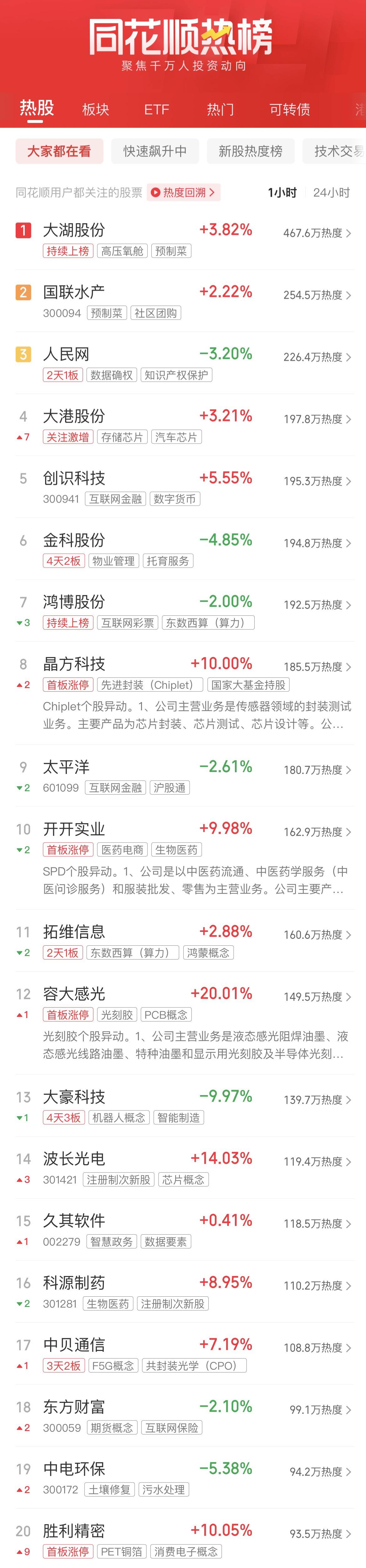 10:07 CPO概念震荡拉升,华西股份(000936)涨停,中际旭创(300308)涨超5%,剑桥科技(603083)、新易盛(300502)、太辰光(300570)等纷纷跟涨。